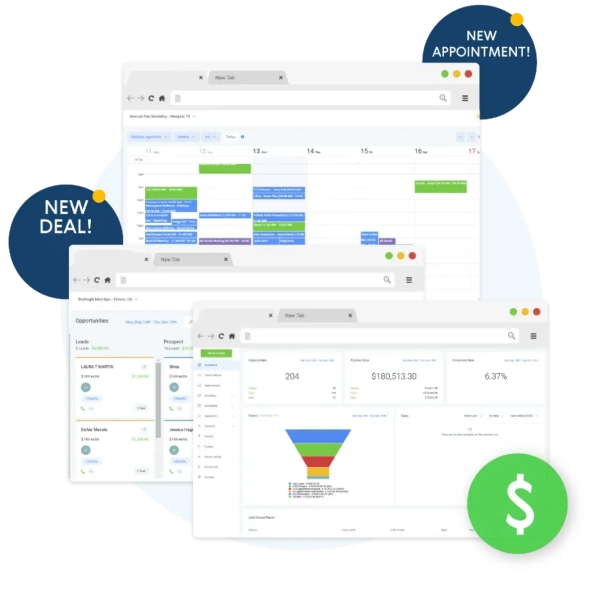 Unlike single-purpose tools, Talon combines marketing, CRM, and payments in one platform. That means your leads, campaigns, and revenue are all tracked together — providing a complete view of how your marketing drives sales.